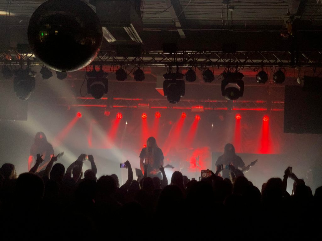 The Swedish Melodic Death Metal titans, Hypocrisy, came out and beat us to a pulp! The experience of Hypocrisy’s live show is 17 songs, spanning their entire 30+ year career, played (almost) non-stop in successive order until the crowd is hamburger. Hypocrisy has four live members, slightly choreographed, with an excellent light show (like an alien abduction), smoke machines, and deafening riffs for your ear holes. The secret, I think, to a Hypocrisy show is the band’s stage presence. Peter (vocals, guitar) has had decades of practice, and this show was an overwhelming practice of stage presence. For their entire show, because of all the smoke, it was an ominous presence of Hypocrisy; mostly silhouettes of larger-than-life legends. I’m glad I got to see Hypocrisy! The whole night was a great show of Metal prowess.