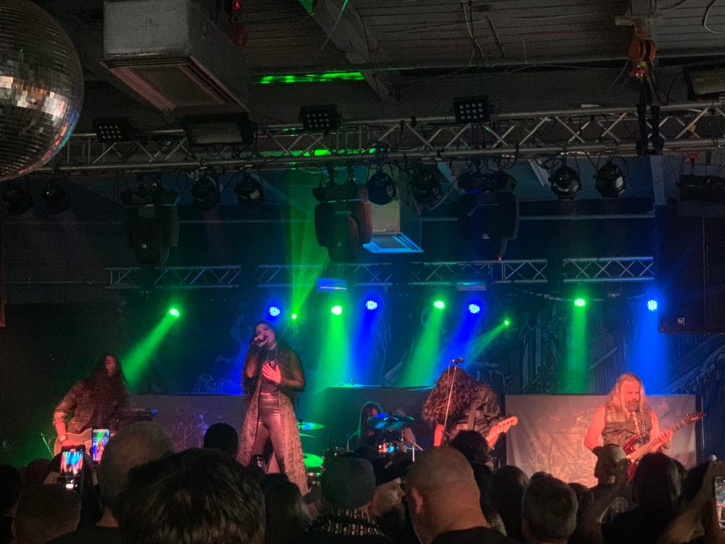 The Canadian band, The Agonist, put on a great show! Vicky (vocals) is very talented, classically trained, with the ability to hit many ranges and octaves – from an operatic scale, to deep register gutterals. Everyone in the band – a five-piece with Vicky – were very engaged and banging. The style of music was quite a change, more straightforward Heavy Metal/ metalcore, but the whole night was a lesson in the breadth of the Metal genre! I talked with Vicky after the show. She’s really cool and very thankful to be able to play live again! When she talks, she literally sounds like a Disney princess — no joke. She is very sweet. I got a picture with her and she even did a radio and station ID for The Saw’s Butcher Shop and Overkill radio!