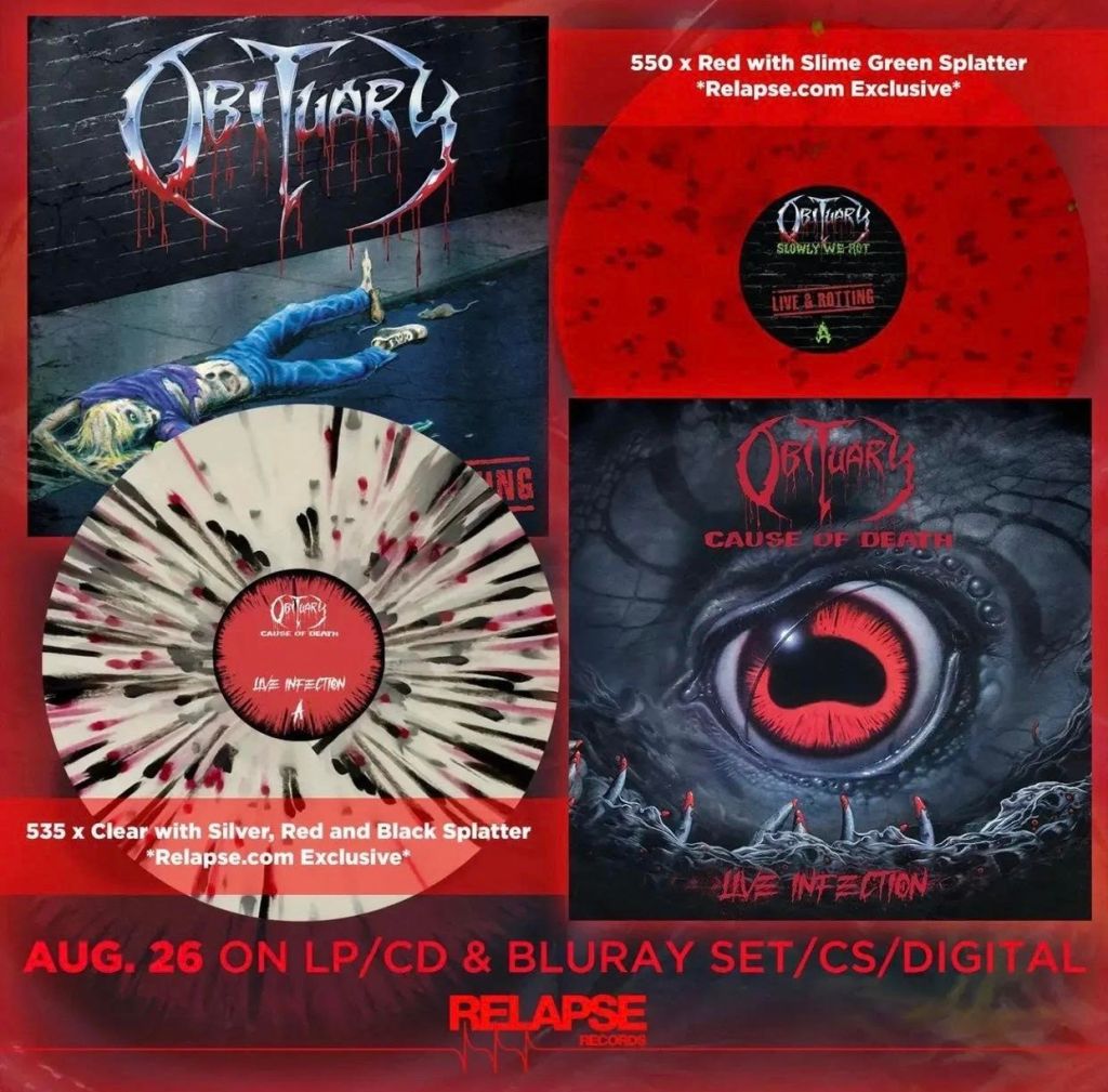 Be sure to hit-up the Relapse website to take advantage of the special pricing for limited edition pressings, bundles, CDs, and vinyl. The O.G. himself (aka, my dad), who buys everything that Obituary markets, has already secured my copies of limited-edition vinyl of these two albums. I know Obituary, personally, and they are great guys and, of course, one of the best bands ever! I’m so proud!